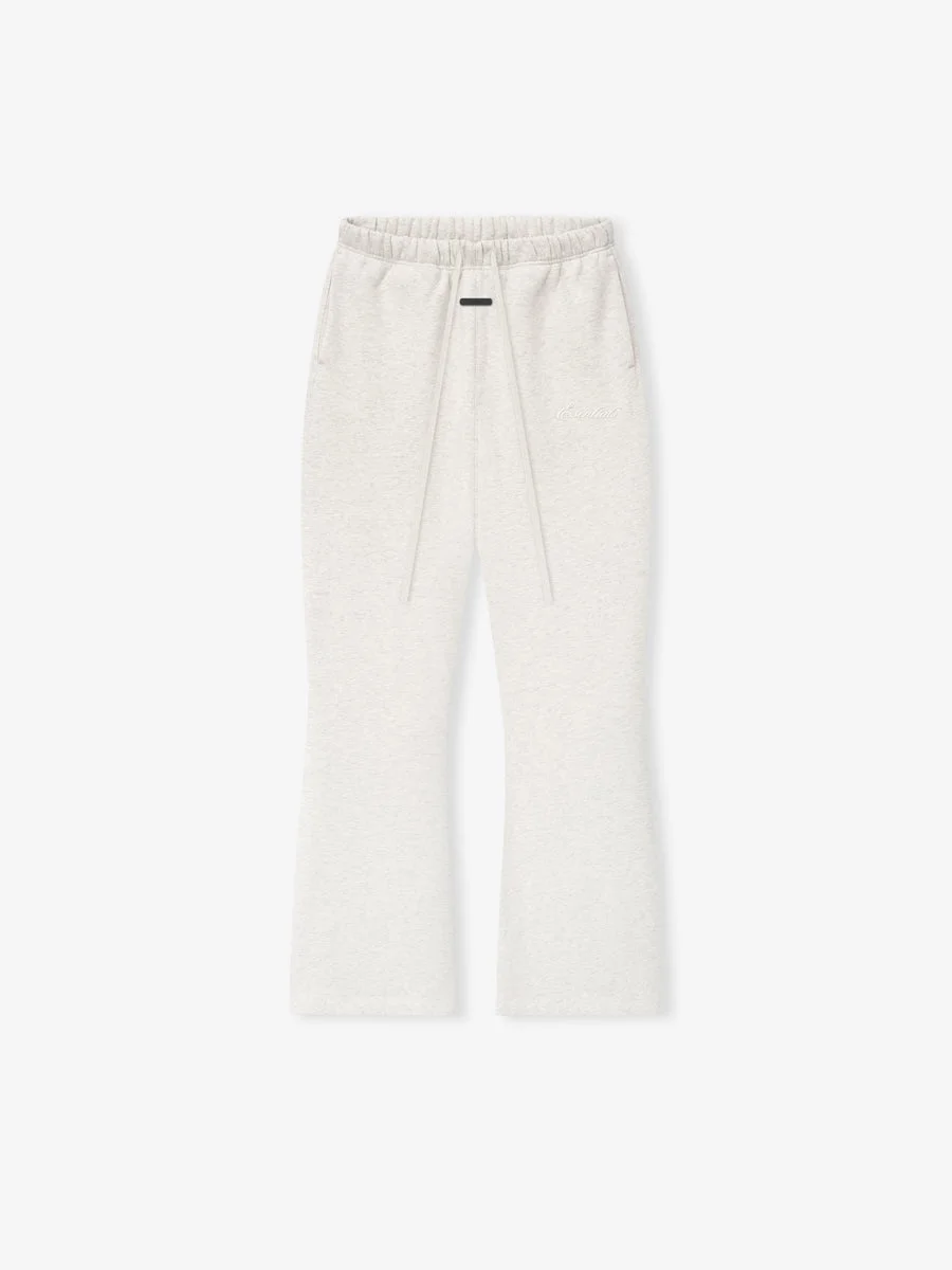 The Women's Signature Flare Sweatpant is crafted from 380GSM core fleece, delivering a substantial feel with balanced comfort and structure.. Cut in a women's relaxed silhouette that extends into a flared leg, the design is accented with the embroidered Essentials signature logo on the leg. Finishing details include an encased elastic waistband with elongated drawcords, side-seam pockets, and an Essentials signature label at the center front.