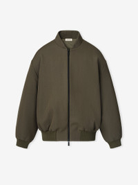 The Bomber Jacket is crafted in Italy from Fear of God's signature weighted wool-cotton twill. The heavy-weight fabric combined with polyfill insulation creates a prominent silhouette. Details include a full front zipper, welt pockets, and rib-knit collar cuffs, and waist hem. A Fear of God label is stitched at the back collar. DETAILS - Fabric: 54% Virgin Wool, 46% cotton twill - Lining: 53% Cupro, 47% polybutylene - Pocketing: 100% cotton - Fill: 100% Polyester - Relaxed Fit - Full Zip Front - Rib-Knit collar, cuffs, waist-hem - Side pockets - Fear of God label - Made in Italy