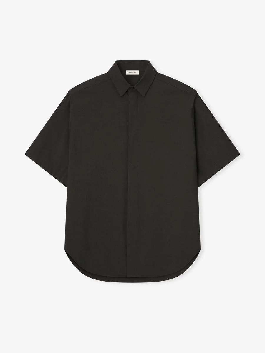 The Classic Short Sleeve Shirt is tailored in Italy from virgin wool-cotton blend with elastane for stretch comfort. The classic Oxford style is remade with relaxed proportions, and minimalist covered placket with horn buttons. DETAILS - Fabric: 46% Virgin wool, 52% cotton, 2% elastane - Relaxed fit - Point collar - Covered plackets - Horn buttons - Barrel cuffs - Fear of God - Made in Italy