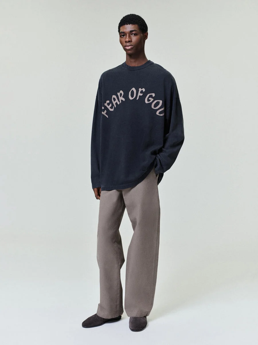 The Fear of God Long Sleeve Tee is crafted in the USA from 100% heavyweight cotton jersey and features a garment wash with a sun fade treatment for an authentic vintage appearance. Hand-printed graphics reference heritage athletic lockups from the past. Designed in a relaxed fit, the long sleeve tee features a rib-knit crewneck. The piece is finished with the iconic Fear of God four-stitch label at the back collar.