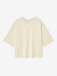 The Milano Knit Tee is made in Italy from 100% merino wool, offering a refined t-shirt option. This modern crewneck design features soft proportions, a relaxed fit, dropped shoulders, and 3/4 sleeves. DETAILS - 100% Merino wool - Relaxed fit: relaxed in body, drop shoulders, 3/4 sleeves - Rib-knit crewneck - Fear of God label - Made in Italy