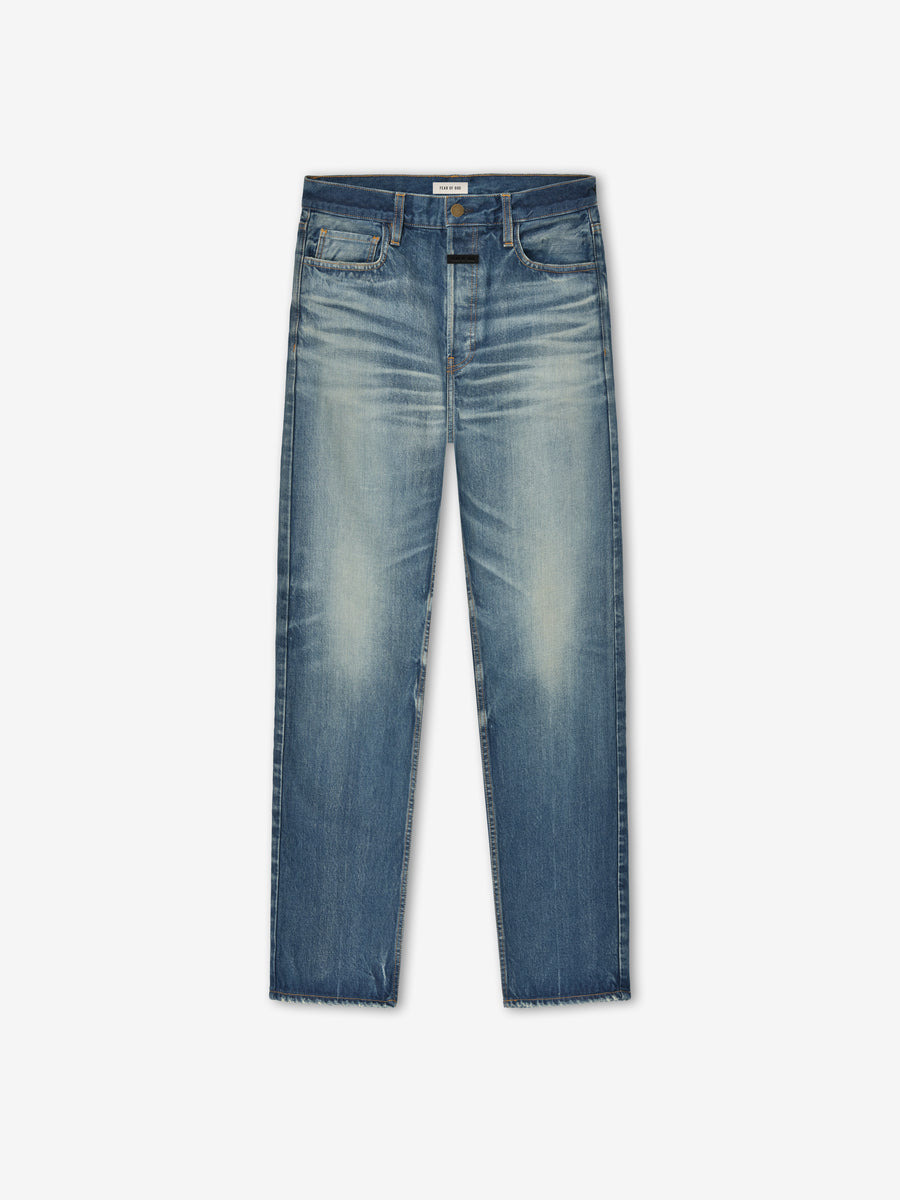 The Straight 5 Pocket Jean is crafted in Japan from 100% cotton denim and features a medium indigo wash with hand distressing. This five pocket jean is designed with a relaxed, straight leg for timeless style and everyday comfort. Additionally, there is a Fear of God label located at the center front. DETAILS - 100% cotton canvas - Medium vintage wash - Relaxed, straight leg - 5-pocket style - Antique metal hardware - Fear of God label - Made in Japan