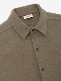 The Overshirt is tailored in Italy from double-faced wool-cashmere, giving a luxurious texture with versatile style. The double-layered piece features the brand's signature elements such as a relaxed fit with dropped shoulders. DETAILS - 90% Virgin Wool, 10% Cashmere - Model is 6’1” and wears size Medium - Relaxed fit - Metal snap placket - Point collar - Barrel cuffs/li> - Fear of God label - Made in Italy