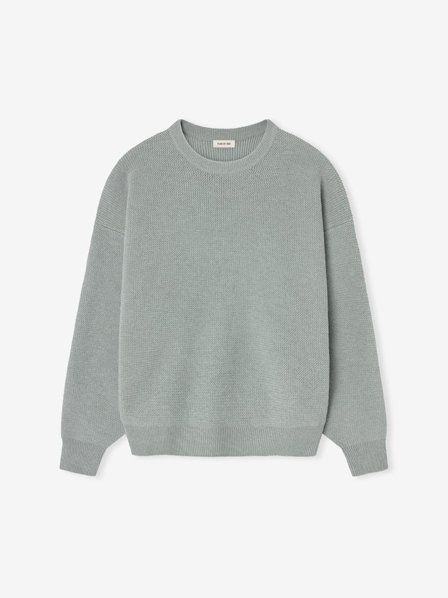The Rib Crewneck Sweater is crafted from 100% virgin wool, offering a uniquely subtle texture with a tactile feel. It features a relaxed fit with drop shoulders, along with a knitted collar, cuffs, and waist hem. A Fear of God label is stitched at the back of the collar. DETAILS - 100% virgin wool knit - Knitted collar, waist hem and cuffs - Fear of God label - Made in Italy