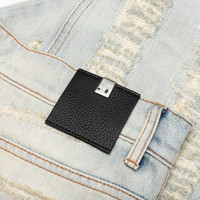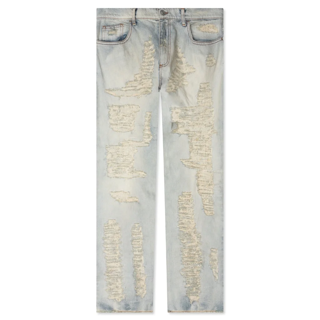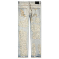 DESTROYED EMBROIDERY JEAN - TAN DENIM BLUE