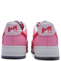 The Bape STA OS M2 in Pink reimagines the classic silhouette with refined details. A leather upper pairs with patent leather overlays, adding a sleek, layered look. The exaggerated STA logo stands out against the design, while the perforated toe box enhances breathability. Finishing touches include a branded dubrae and embroidered heel for signature branding elements that elevate this timeless style. - Leather upper - Patent leather overlays - Exaggerated STA - Perforated toe box - Branded dubrae - Embroidered heal - Style No: 001FWK801309M-PNK