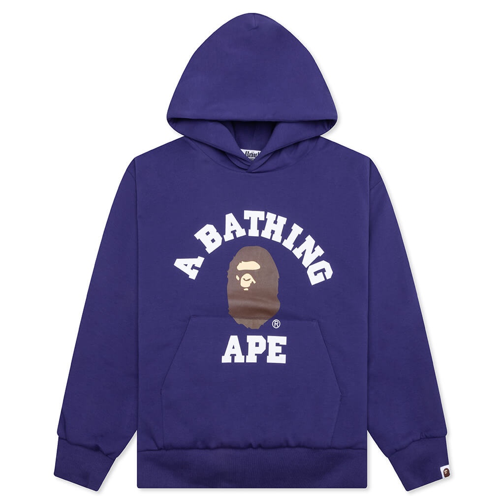 COLLEGE PUFFY RELAXED FIT PULLOVER HOODIE - BLUE