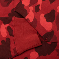 The Color Camo Pullover Hoodie in Red showcases a bold all-over BAPE camo design, delivering signature style. Made from 100% cotton, this hoodie features a screen-printed script on the front for added flair. A kangaroo pocket and an attached hood with adjustable drawstrings provide practical functionality, while ribbed cuffs and hem ensure a snug fit. - 100% Cotton - All over BAPE camo - Screen printed script on front - Kangaroo pocket - Attached hood w/ drawstrings - Ribbed cuffs and hem - Relaxed fit - Style No: 001PPK801011M-RED