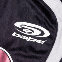 A Bathing Ape draws inspiration from athletic wear with the Flame Pattern Multilogo Relaxed Fit Football Jersey. Crafted from polyester, this jersey is accented with cut and sewn panels. Designed to have a relaxed fit, it features a ribbed crew neckline for structure. Screen-printed and sublimated graphics decorate the piece, while a woven brand tag adds the final touch. - 100% Polyester - Relaxed fit - Crew neckline - Cut and sewn panels - Screen-printed graphics - Sublimated graphics - Woven brand tag on sleeve - Style No: 001LTL301310M-BLK