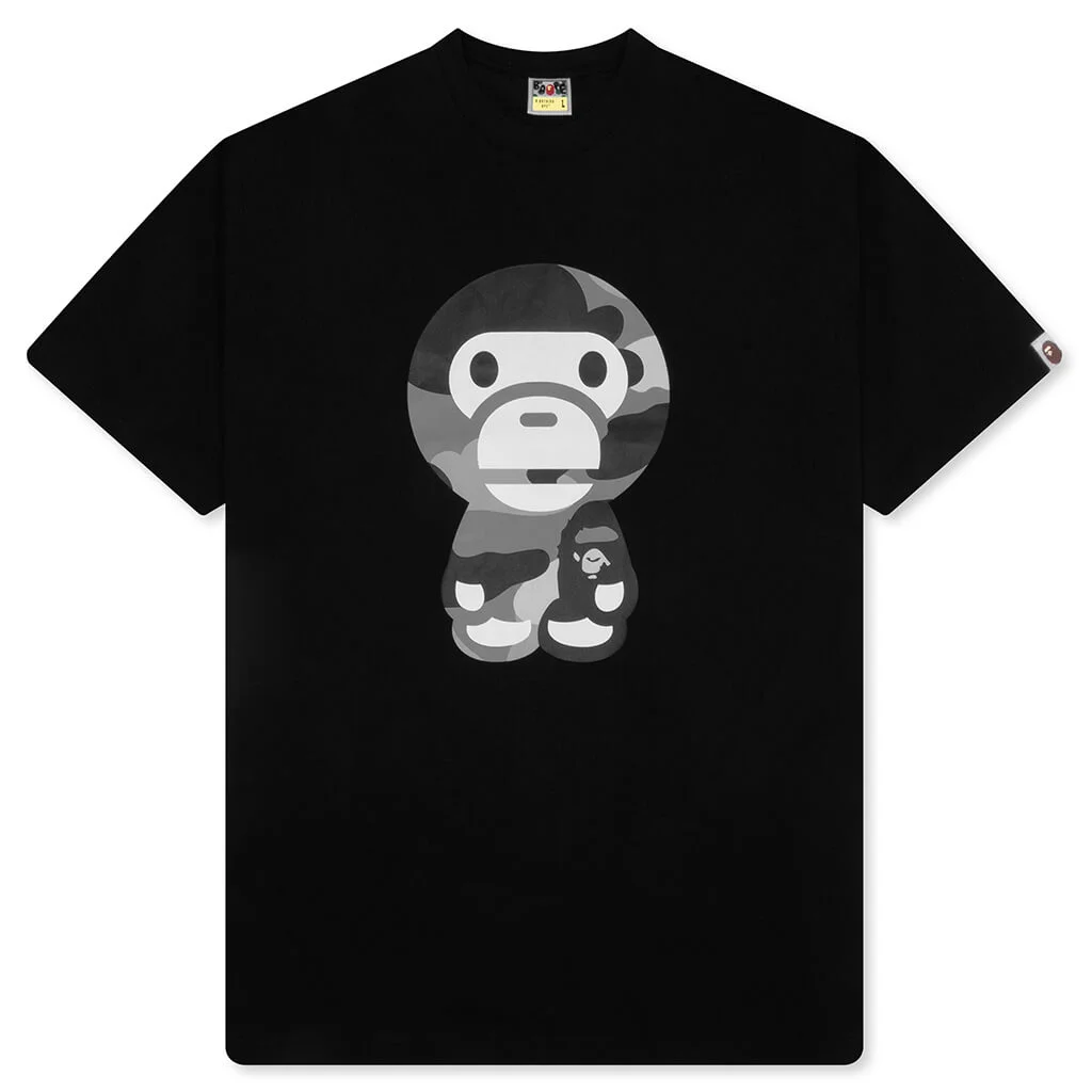 A Bathing Ape presents the Giant 1ST Camo Big Baby Milo Tee in their latest drop. Cut from cotton with a regular fit, this tee features a ribbed crew neckline for everyday comfort. A screen-printed graphic on the front adds playful character, while a signature woven brand tag completes the look. - 100% Cotton - Regular fit - Crew neckline - Screen-printed graphics - Woven brand tab on sleeve - Style No: 002TEL301006M-BK4