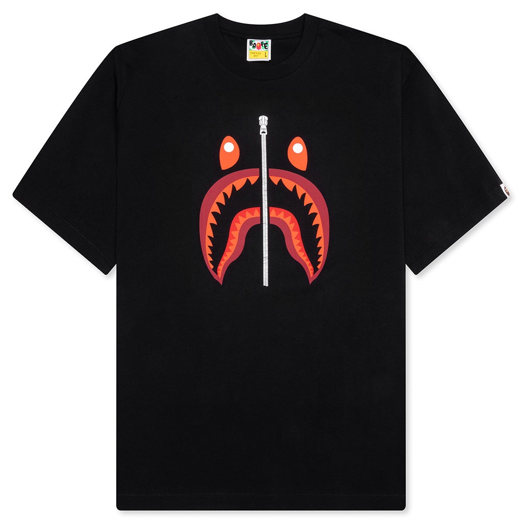 The Shark Tee from BAPE is crafted from 100% cotton and features a rib-knit crewneck for a comfortable fit, while the iconic shark graphic takes center stage across the front. A logo flag at the cuff adds a subtle branded touch, paired with statement text printed at the back to complete the look. 1K70 110 307 BLACK - 100% Cotton - Crew neckline - Screen-printed graphics - Woven label tag - Ribbed trims - Style No: 001TEK701307M-BLK