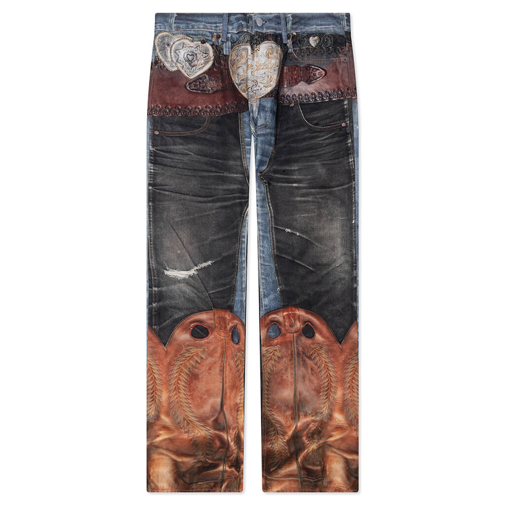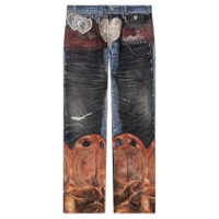 The Acne Studios Regular Fit Jeans are made from 100% cotton and finished with a seasonal trompe l'oeil print that creates the illusion of layered pant details. Featuring a low-rise waist and straight leg silhouette. The jeans are finished with a traditional five-pocket design and button fly. - 100% Cotton - Regular fit - Low-rise waist - Straight leg - Seasonal trompe-l'oeil print - 5-pocket construction - Button fly - Style No: BK0704-AIL
