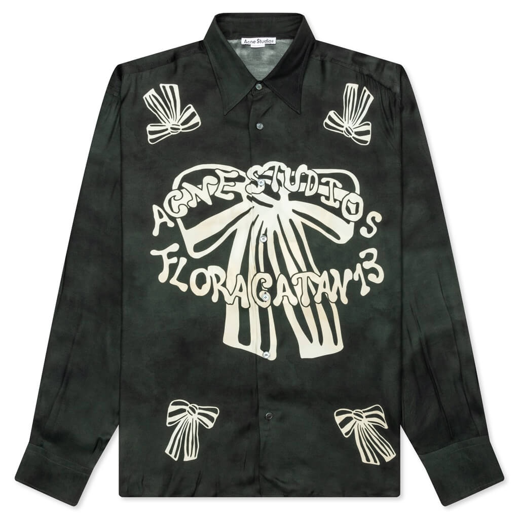 The Acne Studios Floragatan 13 Button-Up Shirt features vibrant graphics on the front and back, crafted from durable polyester for a sleek finish. With its oversized fit and button-down closure, this shirt combines bold design with contemporary style. - Graphics on the front and bac - Made from polyester - Button-down closure - Oversized fit - Style no: BB0602-J83