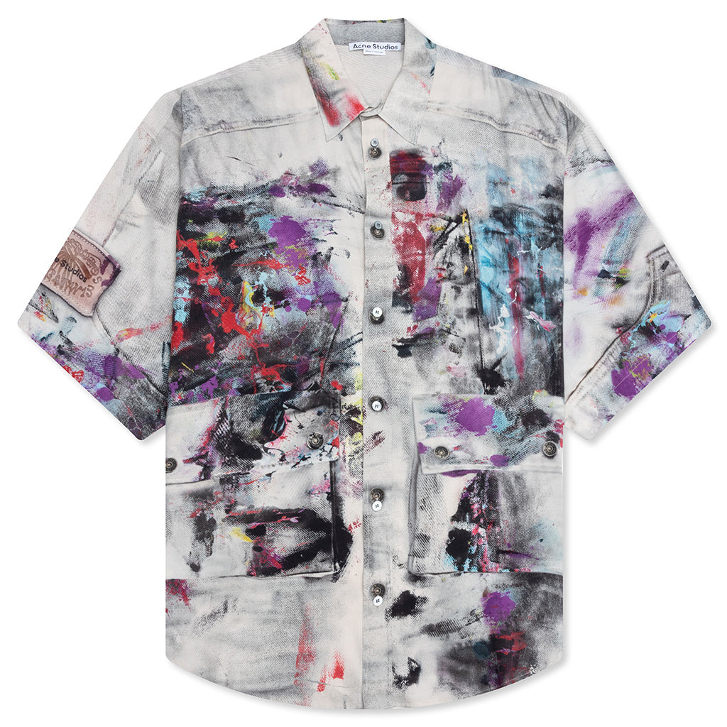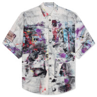 PAINTED TROMPE-L’OEIL PRINT BUTTON UP SHIRT - WHITE/MULTICOLOR