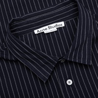 Elevate your wardrobe with the Acne Studios Stripe Button-up Shirt, a refined piece that seamlessly blends classic tailoring with contemporary design. Made from lightweight cotton poplin, the shirt has a soft and breathable feel. Designed with a seasonal stripe design and subtle embroidered bow graphic at the chest. The look is completed with a classic collar and button-up closure with custom brand buttons for a timeless look. - 100% Cotton - Made with organically grown cotton - Relaxed fit - Below waist length - Classic collar - Button-up closure - Custom Acne Studios buttons - Embroidered bow at the chest - Curved hem - Style No: BB0639-AH4