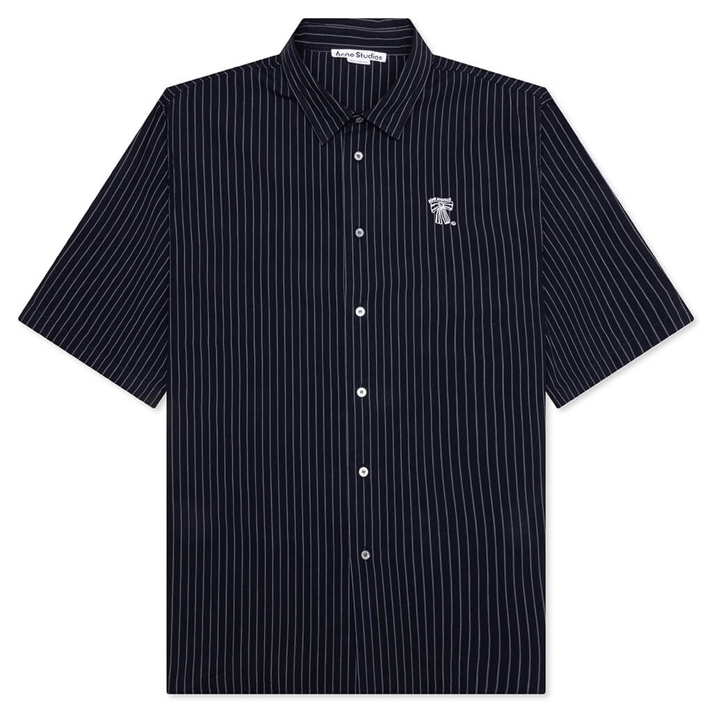 Stripe button-up shirt - Navy/white