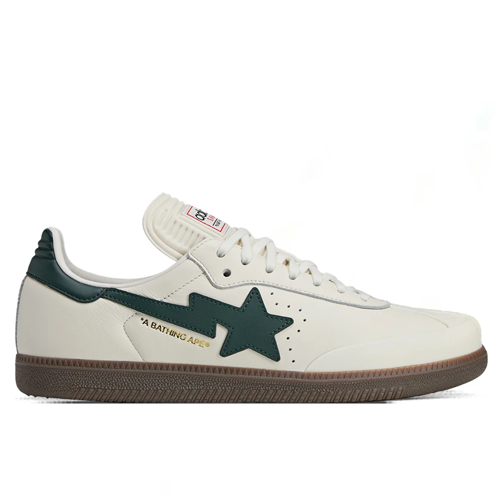 The Adidas x BAPE Samba reimagines the classic soccer silhouette in a premium update. A durable rubber T-toe replaces the traditional suede, while the upper is built from premium leather. Signature details include Adidas’ Three Stripes on one side, BAPE’s iconic STA logo on the other, and golden A BATHING APE® branding to finish the look. DUE TO THE NATURE OF THIS PRODUCT, ALL SALES ARE FINAL. THIS PRODUCT DOES NOT QUALIFY FOR DISCOUNTS OR SPECIAL PROMOTIONS. - Premium leather upper - Synthetic lining - Regular fit - Gold branding - Rubber T Toeguard - Extra laces - Rubber outsole - All sizes listed in U.S. Mens sizing unless stated otherwise - Style No: KJ8852
