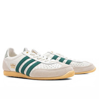 The Adidas Japan Sneaker is a reissue of a 1964 trainer that appeared in a catalog for that years global sporting event held in Japan. This model has a soft leather upper with perforated toe box. The signature gold foil at the side panel is adorned with Adidas Japan icons. Finishing touches include the lace-up closure and the rubber outsole. Close to the original, the design details sets them apart like a double-stitched T-toe. - Tumbled perforated leather upper - Suede overlays - Lace closure - Gold foil detailing - Three Stripes - Textile lining - Rubber outsole - All sizes are listed in US Women's sizing unless stated otherwise - Style No: JI2663