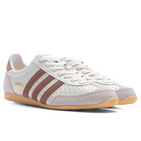 The Adidas Japan Sneaker is a reissue of a 1964 trainer that appeared in a catalog for that years global sporting event held in Japan. This model has a soft leather upper with perforated toe box. The signature gold foil at the side panel is adorned with Adidas Japan icons. Finishing touches include the lace-up closure and the rubber outsole. Close to the original, the design details sets them apart like a double-stitched T-toe. - Tumbled perforated leather upper - Suede overlays - Lace closure - Gold foil detailing - Three Stripes - Textile lining - Rubber outsole - All sizes are listed in U.S. Women's sizing unless stated otherwise - Style No: IH1600