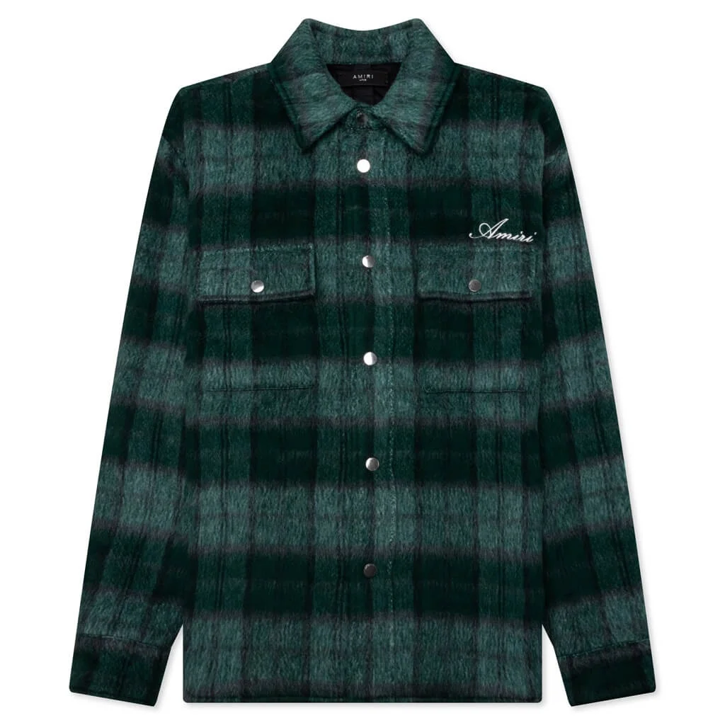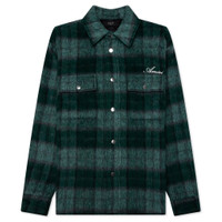 Luxury apparel brand Amiri introduces the Brushed Plaid Overshirt in their AW '23 collection. Cut from a wool blend, this garment is ideal for warm weather. The design features a spread collar, chest flap pockets + a snap front closure. Amiri signature logo can be seen on the left chest, and snap cuffs complete the look. - 100% nylon - Made in Italy - Spread collar - Chest flap pockets - Button snap front closure - Curved hem - Amiri branding - Style No: AW23MOS054-578