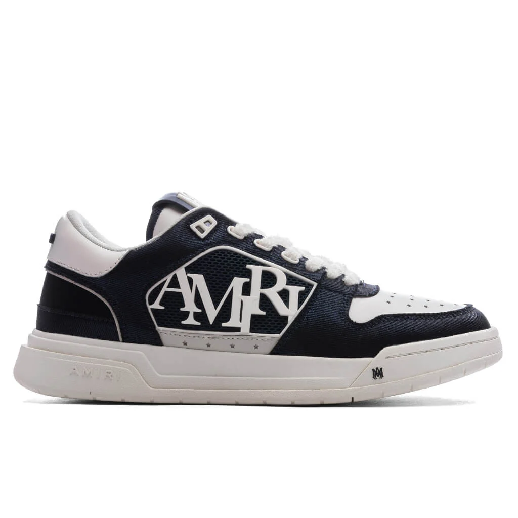 The Amiri Classic Low in Wet Shimmer reimagines the classic tennis-inspired sneakers with glimmering details. Crafted with a leather and cotton upper, the textile is adorned in glitter for added shine and paired with textured laces. The design features the iconic Amiri staggered logo on the rubber mesh panels for signature flair. More branded details are found on the tongue, heel tab, and sole. Rounding out the design is the rubber outsole. - Leather and cotton upper - Rubber mesh center panels - Amiri staggered logo on the side panel - Textured laces - Branding on tongue, heel tab, and sole - Rubber sole - All sizes are listed in E.U. Men's sizing unless stated otherwise - Style No: AMFOSR1189-393