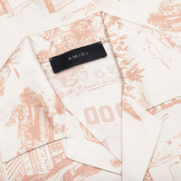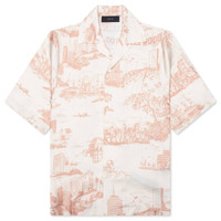 For Autumn-Winter 2024, Hollywood's iconic landmarks are reimagined in a sophisticated take on classic Toile de Jouy prints. The LA Landmark Bowling Shirt is crafted from fluid silk twill, featuring a notched collar and button-down closure for a polished look. - Notched collar and button-down closure - Fluid silk twill - Made in Italy - 100% silk - Autumn-Winter 2024 collection - Style no: AMSTCA1031-271