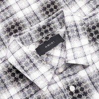Amiri’s MA Quad Jacquard Flannel in Black elevates a classic silhouette with refined craftsmanship. Constructed from cotton, this flannel features a raw hem for a lived-in look, complemented by button cuffs and a classic collar. Front chest pockets and yoked back shoulders provide added structure and functionality, while the button-up closure ensures a polished finish. - 100% Cotton - Raw hem - Button cuffs - Classic collar - Button up closure - Front chest pockets - Yoked back shoulders - Style No: AMSTFL1010-001