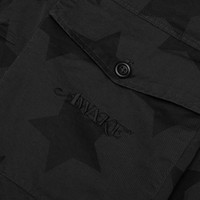 Upgrade your outerwear offerings with the Awake NY Star Printed Anorak. This premium design is composed of a blend of cotton and polyester and features a three-button placket that leads to an adjustable drawstring hood. Two welted chest pockets add functionality, while embroidered branding resides at the chest. An adjustable hem is also placed, with ribbed details residing at the cuffs and hem. The all-over star graphics complete the design. - Cotton/polyester blend - Drawstring hood - Screen-printed graphics - Adjustable hem - Chest pockets - Embroidered branding - Ribbed trims - Style No: AWK-SP22-OW002-CHAR/BLK