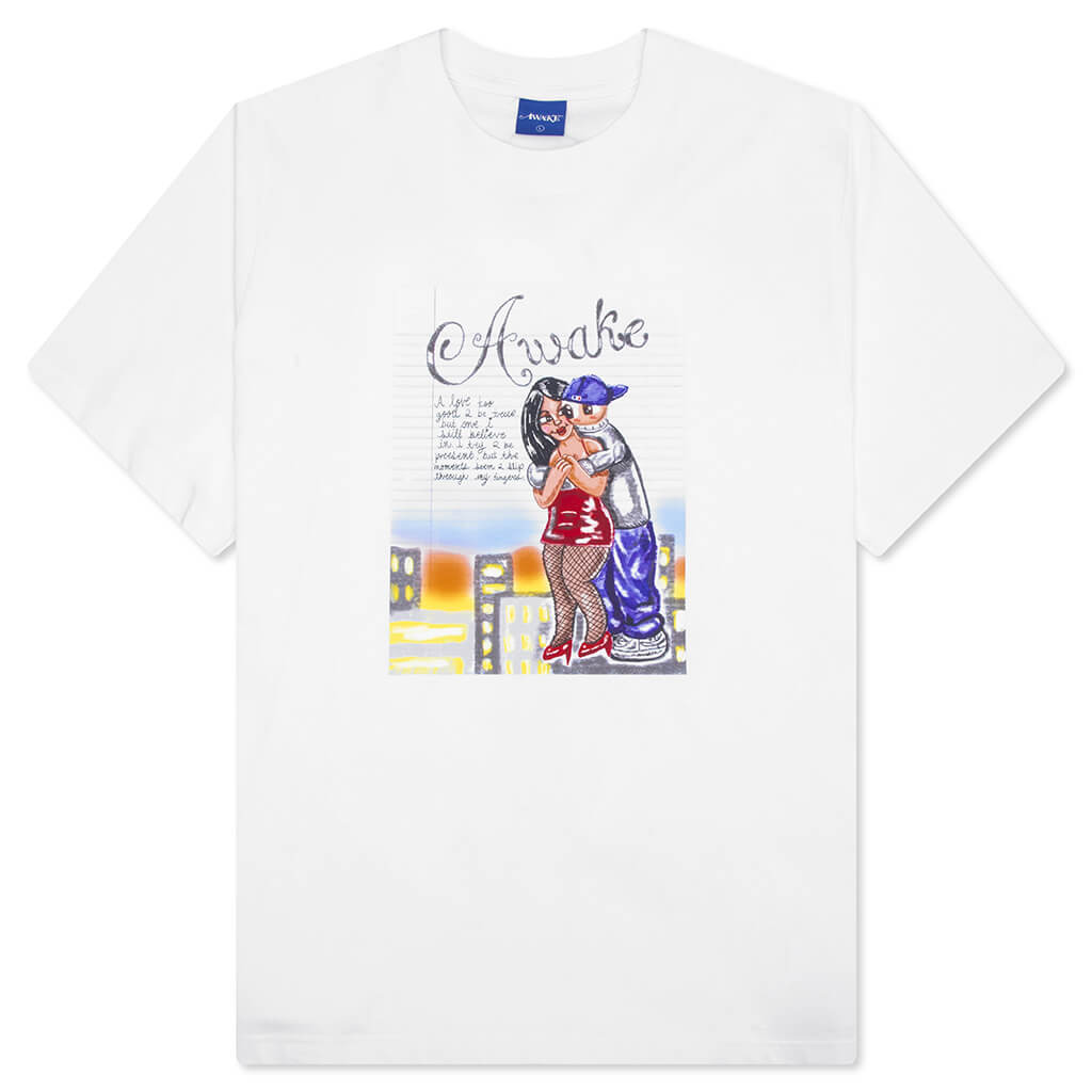 Elevate your daily rotation with the Hug Tee from Awake NY. Cut from soft cotton with a relaxed fit, this tee features a ribbed crew neckline. Simple and stylish, a screen-printed graphic sits at the front of the final touch. - 100% Cotton - Relaxed fit - Crew neckline - Ribbed collar - Screen-printed graphics - Style No: AWK-FW25-TS003-WHI