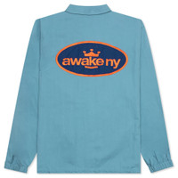 Composed of lightweight cotton twill, the Awake NY King Logo Twill Coaches Jacket makes an impression with its button closure and embroidered king logo patches at the front and rear. The pointed collar, cinched cuffs, and drawstring hem wrap up the remainder of the design. - 100% cotton twill - Pointed collar - Button closure - Embroidered patches - Cinched cuffs - Drawstring hem - Style No: AWK-SP23-OT007-SLB