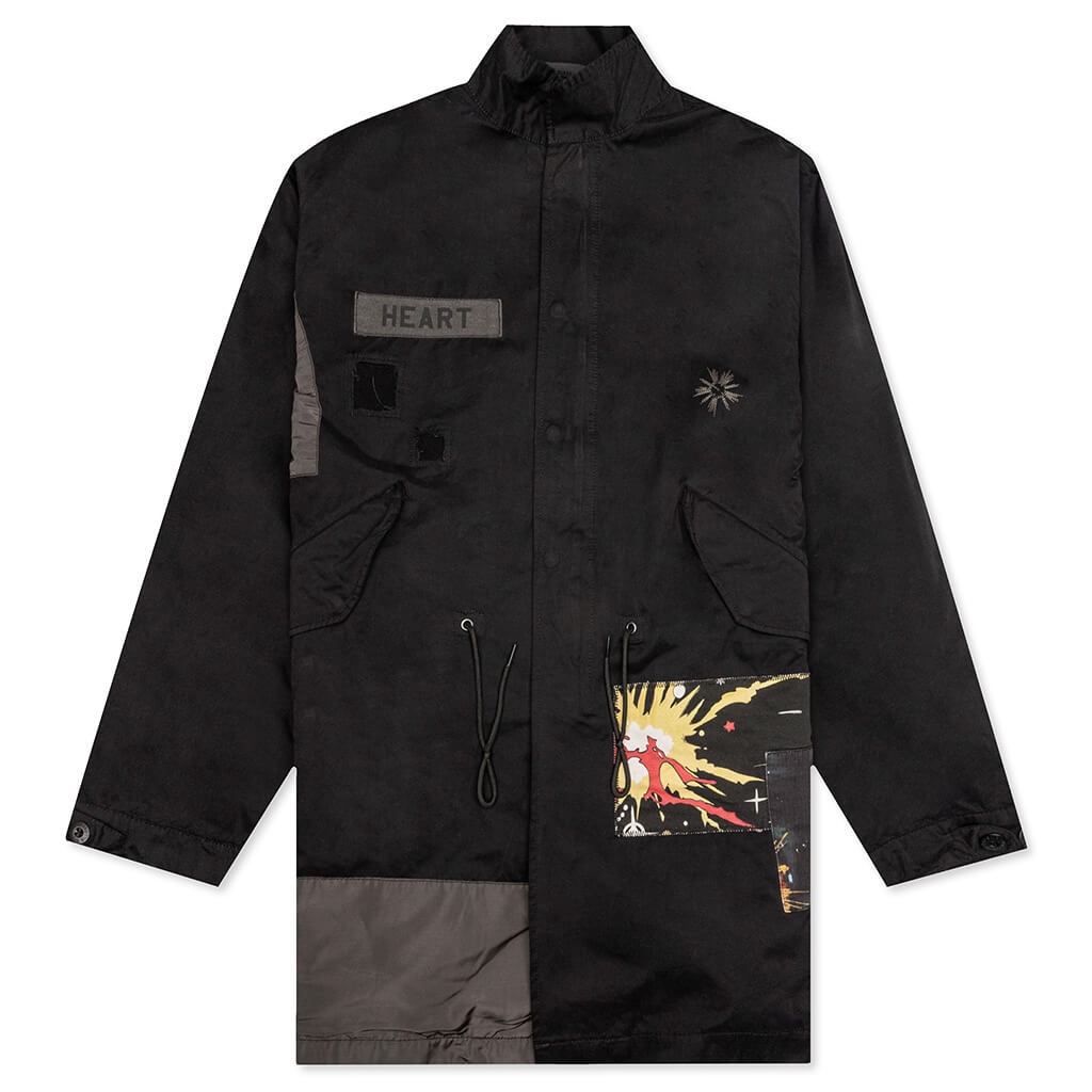 The latest outerwear offering from Billionaire Boys Club features the Limits Jacket. Crafted from nylon material, this bold silhouette incorporates a sherpa lining for optimal comfort. Applique patches along with embroidered detailing such as flowers and spray paint are subtly placed, while the button-up closure offers a secure fit. The welt pockets at the front appear along with the barrel cuffs. FINAL SALE ITEM. NOT ELIGIBLE FOR RETURNS/CANCELLATIONS. - 100% nylon - Button-up closure - High neck - Embroidered detailing - Screen-printed imagery - Sherpa lining - Applique repairs - Welt pockets - Barrel cuffs - Style No: 811-9402-BLK