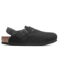 The Narrow Tokio Suede Leather in Black offers a blend of comfort and style, featuring a classic suede upper with a nubuck leather backstrap. The contoured cork-latex footbed molds to your foot over time, providing personalized support with every wear. A suede lining adds a soft touch, while the flexible EVA sole ensures durability and comfort. With adjustable front and back straps, this sandal delivers a secure fit. Crafted in Germany, it embodies quality and timeless design. - Contoured cork-latex footbed creates custom support with wear - Classic suede upper, nubuck leather backstrap - Suede footbed lining - Flexible EVA sole - Adjustable front strap and backstrap - Made in Germany - Style No: 1028348