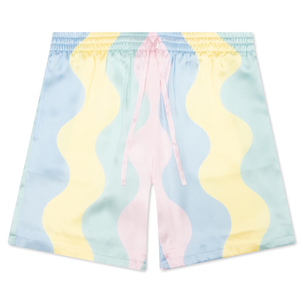 French-Moroccan fashion label Casablanca introduces the Casa Shell Wave Silk Shorts w/ Drawstrings. The elevated silhouette is crafted entirely from silk and features a drawstring waistband. Side pockets are placed for functionality, while the screen-printed wave graphics make a bold statement. - 100% silk - Relaxed fit - Elastic drawstring waistband - Side pockets - Screen-printed graphics - Style No: MS22-TR-012-SHE