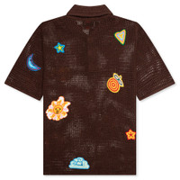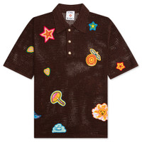 CROCHET POLO WITH PATCHES - BROWN