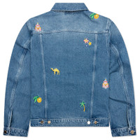 STONE WASH DENIM EMBROIDERED MOTIF JACKET - STONE WASH