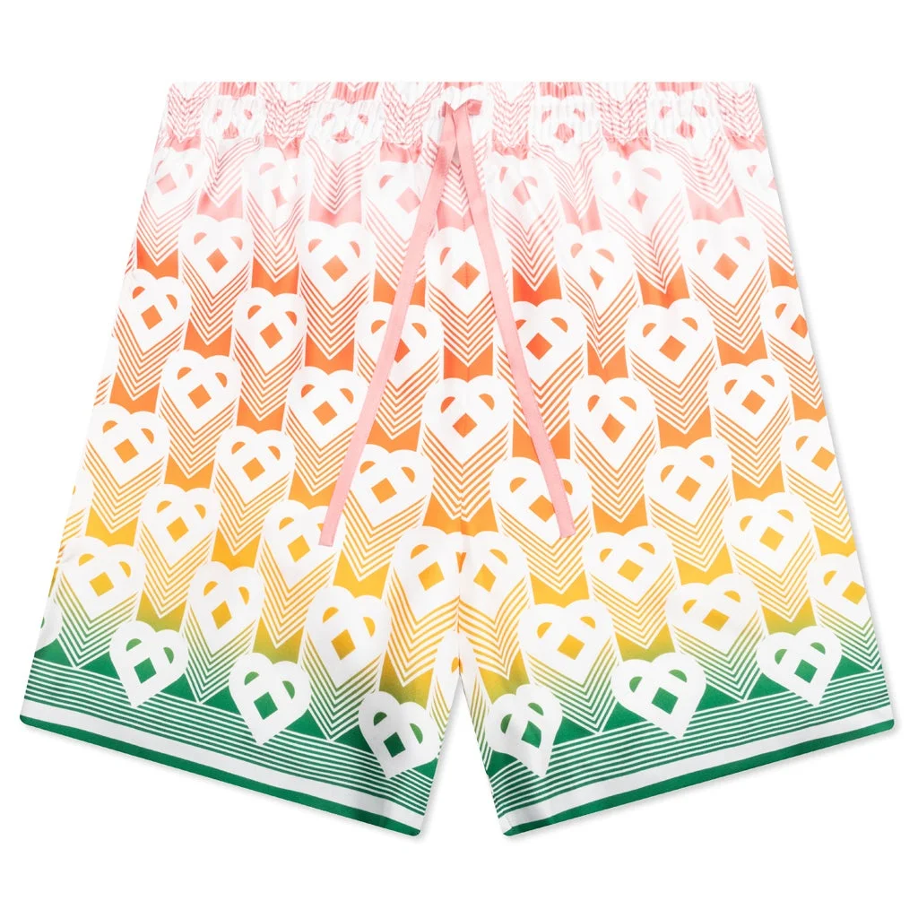 UNISEX SILK SHORTS WITH DRAWSTRINGS - HEART MONOGRAM GRADIENT