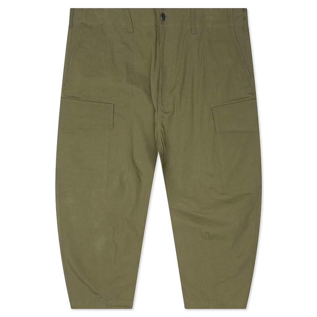 The Compact Cotton Cargo Pants from Comme des Garcons Homme are built for durability and everyday versatility. Made entirely from cotton, they offer a comfortable feel with structured drape that stands up to wear. Functional design elements include a zip fly with button closure, belt loops, and a full set of pockets. Pleat detailing at the bottom of the pant legs adds subtle dimension, while drawstring hems offer adjustable styling. - 100% Cotton - Heavyweight - Zip fly with button closure - Belt loops - Side-seam pockets - Side cargo pockets - Back welt pockets with flaps and button closures - Pleat detailing - Drawstring hem on pant legs - Style No: HO-P011-051-2
