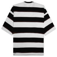 The Cotton Jersey Multi Border T-Shirt by Comme des Garcons Homme blends comfort with subtle utilitarian flair. Cut from 100% cotton, it features an oversized silhouette with drop shoulders for a relaxed fit that drapes effortlessly. With a classic ribbed crew collar, the t-shirt features bungee cord drawstrings at the hem for customizable styling. A woven label at the bottom of the shirt complete the ensemble with subtle branding. - 100% - Relaxed fit - Drop shoulders - Ribbed crew collar - Bungee cord drawstrings at the hem - Woven label branding - Style No: HO-T018-S25-1