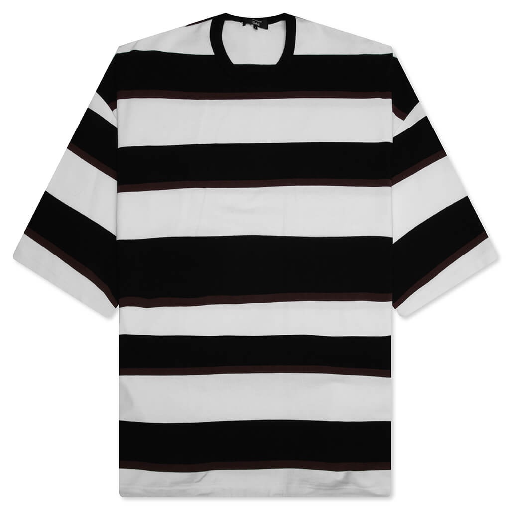 COTTON JERSEY MULTI BORDER T-SHIRT - BLACK/BROWN/WHITE