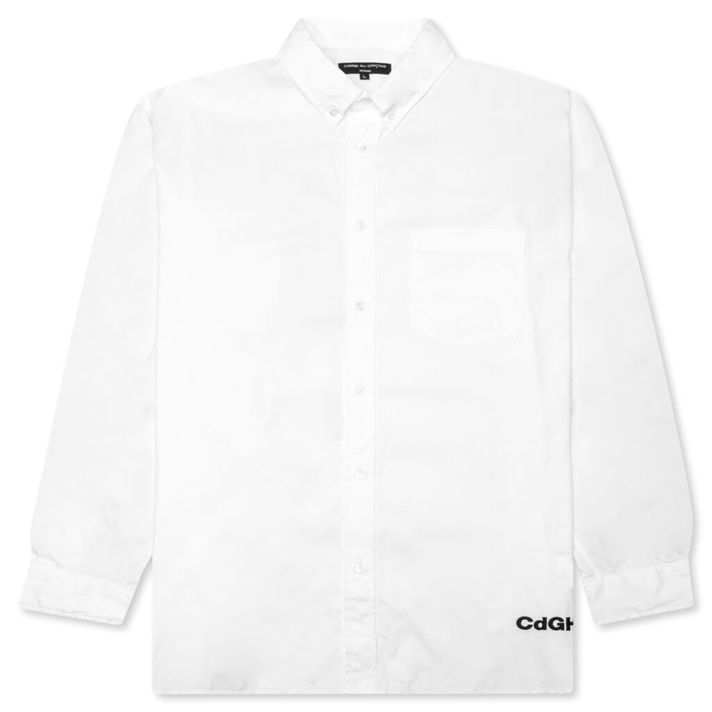 Comme Des Garcons expands its Homme collection with the Cotton Shirt. Composed of 100% cotton, the design features a button-down closure, adjustable cuffs, and a chest pocket. The signature CdGH embroidered logo can be seen at the hem as a finishing touch. - 100% Cotton - Button-down closure - Pointed collar - Button cuffs - Embroidered branding - Style No: HL-B009-051-2