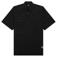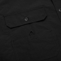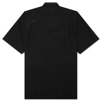 The Comme Des Garcons Homme Curved Hem Nylon Short Sleeve Shirt is crafted from 100% nylon with a light yet sturdy feel, offering both durability and comfort. Designed with a classic collar and button-down closure, this short-sleeve shirt features two front flap pockets with button closures, a Velcro pocket compartment with elastic attachment to hook, and embroidered branding at the hem. A curved hem, single side pleats on the back, and a boxy fit complete the utilitarian-inspired silhouette. - 100% Nylon with a light, sturdy feel - Classic collar - Button-down closure - Two front flap pockets with button closures - Velcro pocket compartment with elastic attachment to hook - Embroidered branding at bottom - Curved hem - Short sleeves - Single side pleats on back - Boxy fit - Style No: HO-B024-S25-1