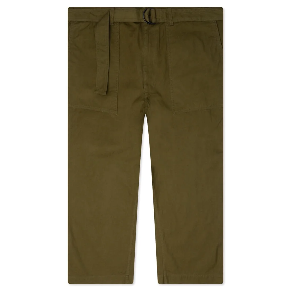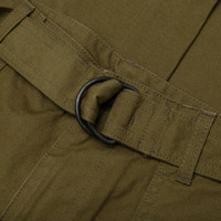 The Oxford Belted Pants in Olive from Comme Des Garcons Homme are crafted from pure cotton, offering a durable and structured feel. These pants feature a concealed fly with button fastening, a belted waist with belt loops, and side patch pockets for added utility. The design is finished with two rear button-fastening flap pockets and a wide-leg silhouette, providing both style and comfort. - 100% Cotton - Concealed fly and button fastening - Belted waist - Belt loops - Side patch pockets - Two rear button-fastening flap pockets - Wide leg - Style No: HN-P011-051-2