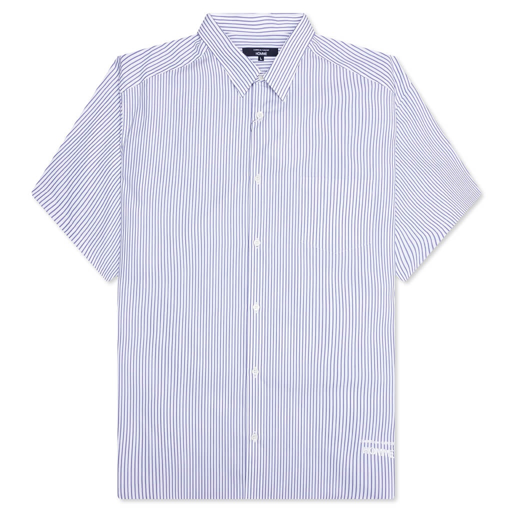 Elevate your everyday wardrobe with the refined simplicity of the Short Sleeve Logo Shirt by Comme des Garcons Homme. Constructed entirely from cotton, the shirt feels light yet crisp. With a loose silhouette, the shirt features tailored details like a standard collar, button front closure, and a curved hem. The shirt is covered in a pinstripe designed and completed with a discreet embroidered logo for a touch of understated luxury. - 100% Cotton - Short sleeve - Standard collar - Button front closure - Chest pocket - Back yoke - Curved hem - Embroidered branding - Style No: HO-B023-S25-2
