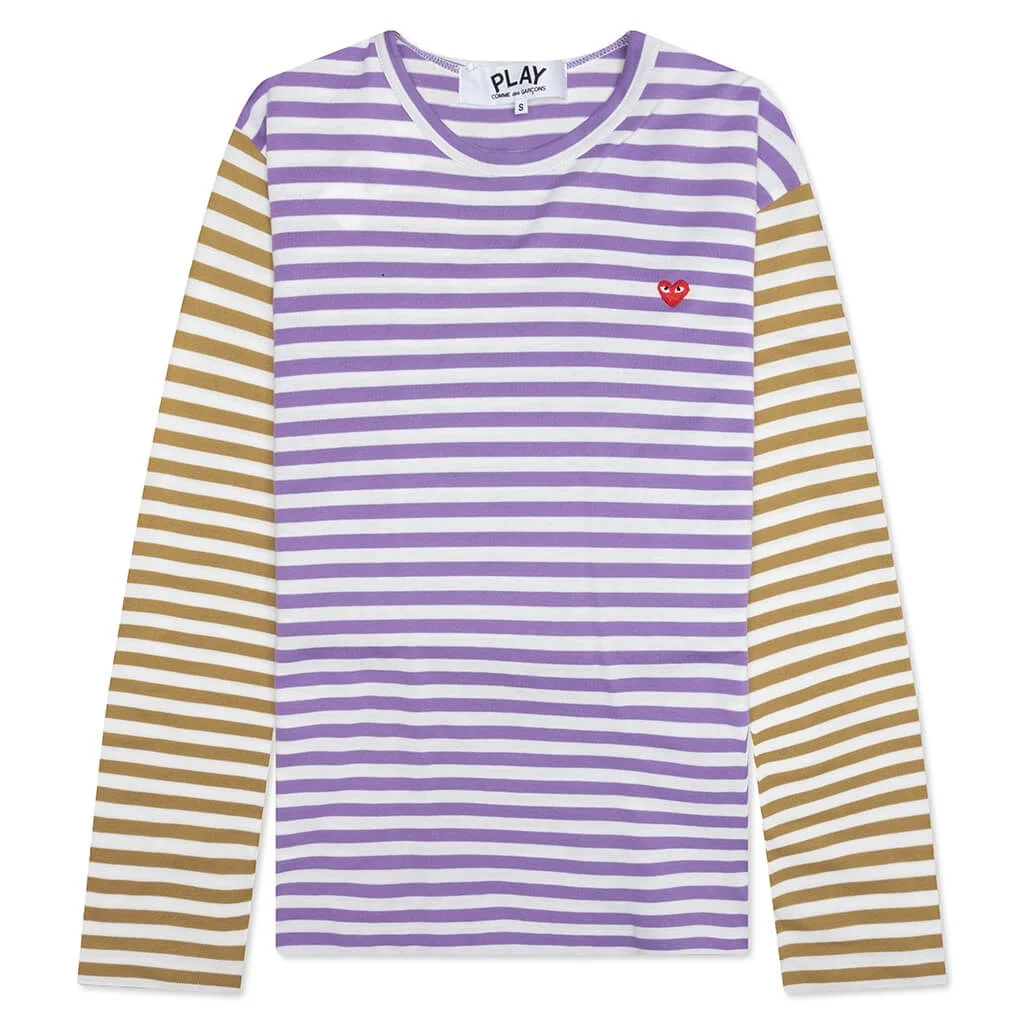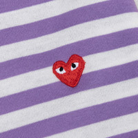 The Comme des Garcons PLAY repertoire introduces the Bi-Color Stripe T-Shirt. Featuring a cotton construction, the silhouette includes an all-over striped design. A ribbed neckline is also placed. An embroidered red heart is placed at the chest for a finished look. AZ T318 051 4 - 100% cotton - Ribbed neckline - All-over stripes - Embroidered heart - Style No: AZ-T318-051-4