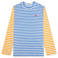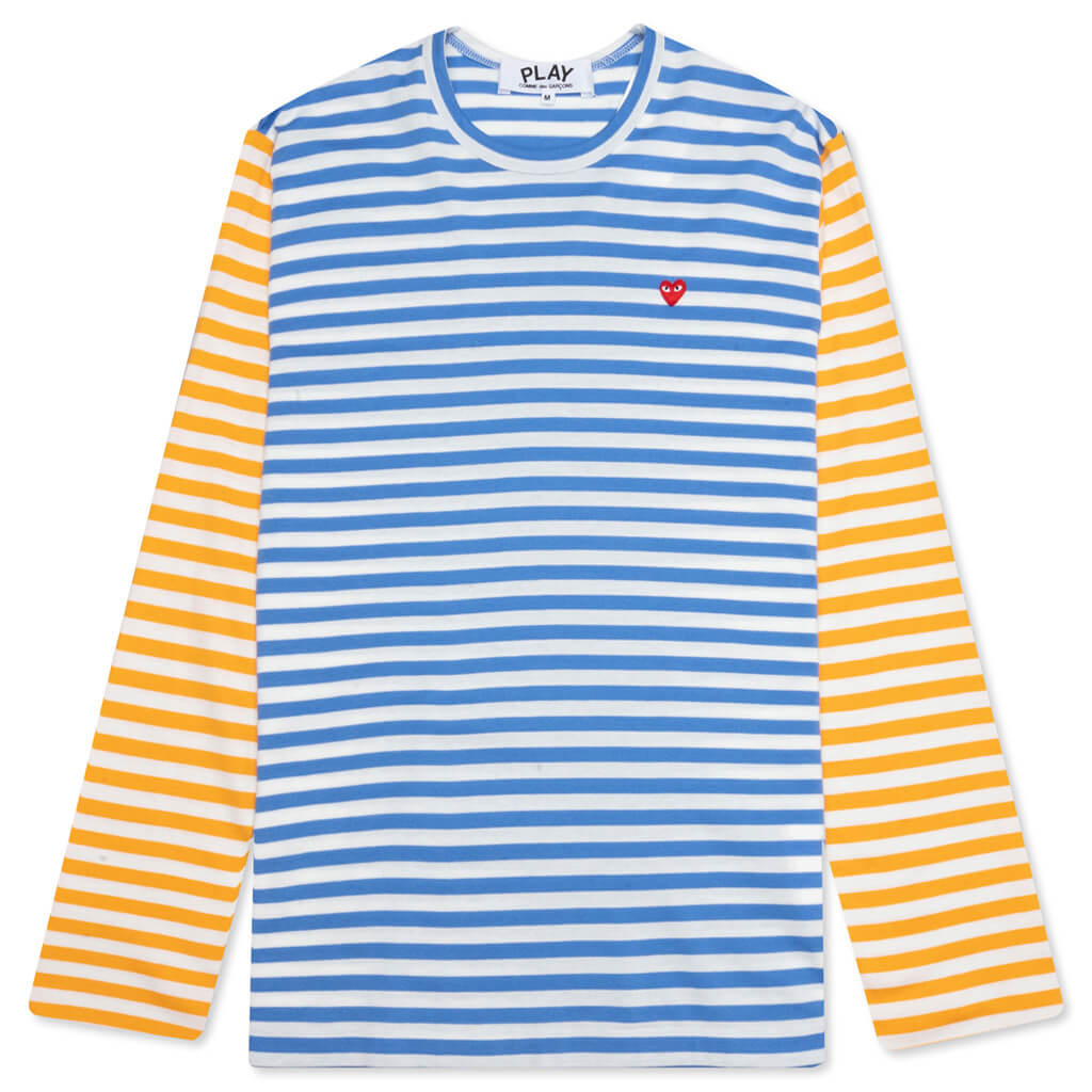 COMME DES GARCONS PLAY BI-COLOR STRIPE T-SHIRT - BLUE/YELLOW