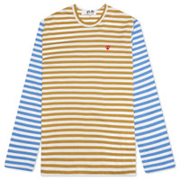 COMME DES GARCONS PLAY BI-COLOR STRIPE T-SHIRT - OLIVE/BLUE