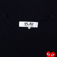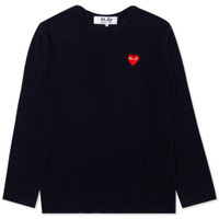 The concept of the Comme des Garcons PLAY line is design by not designing. Characterized by the iconic red heart logo designed by artist Filip Pagowski, the line is a collection of unisex basics, fragrances, and footwear for those who enjoy simplicity. Pictured is the Comme des Garcons PLAY Crewneck Sweater in Navy. COMME DES GARCONS PLAY APPAREL HAS A SMALLER FIT, WE RECOMMEND SIZING UP. - 100% Wool - Embroidered branding - Made in Japan - Style no: AZ-N068-051-2