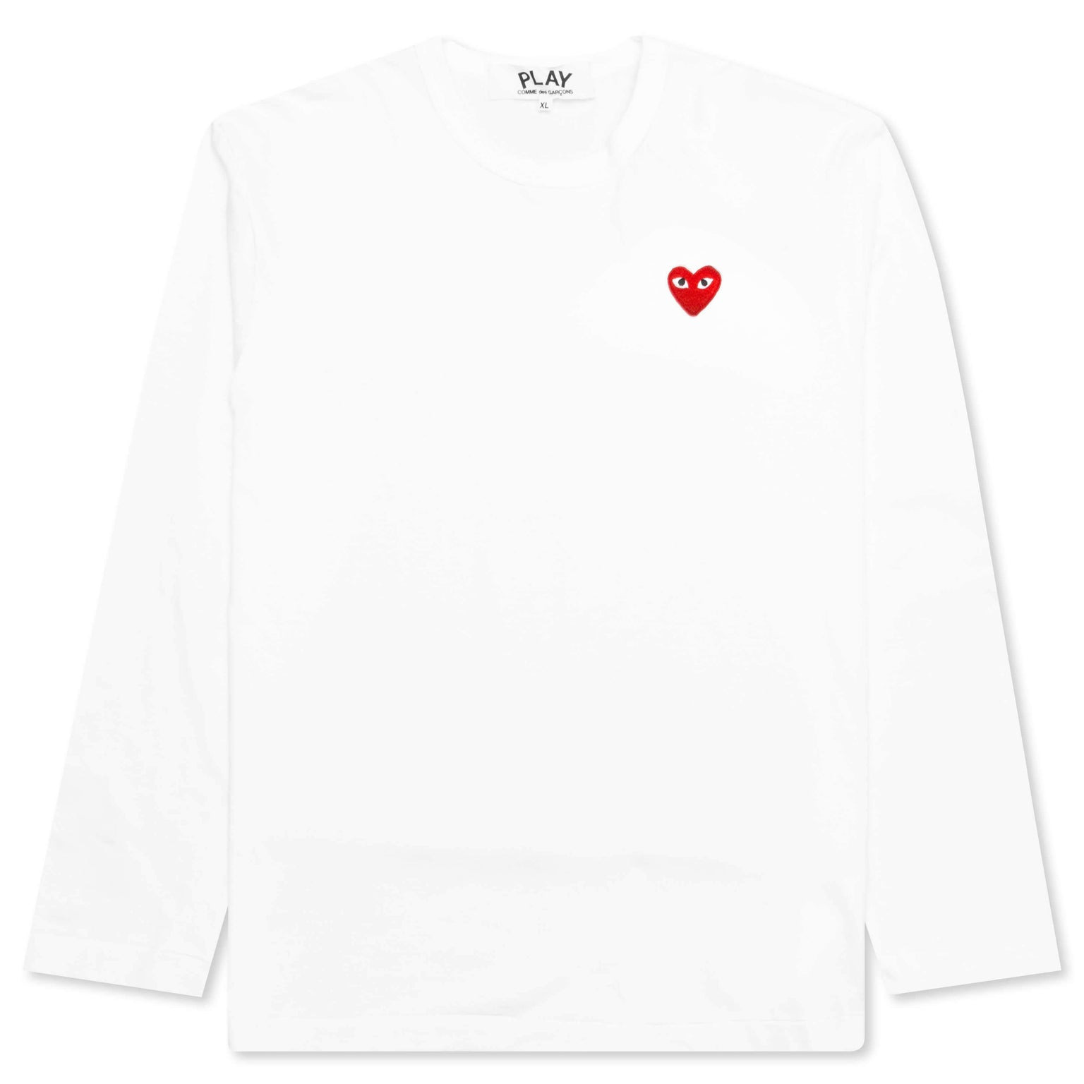 COMME DES GARCONS PLAY EMBLEM LONG SLEEVE T-SHIRT - WHITE