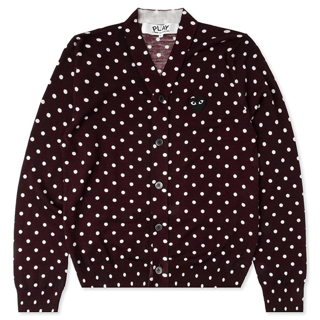 COMME DES GARCONS PLAY POLKA DOT CARDIGAN BLACK HEART - BURGUNDY