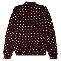 The concept of the Comme des Garcons PLAY line is design by not designing. Characterized by the iconic red heart logo designed by artist Filip Pagowski, the line is a collection of unisex basics, fragrances, and footwear for those who enjoy simplicity. Pictured is the Comme des Garcons PLAY Polka Dot Cardigan in Burgundy. AZ N038 051 3 COMME DES GARCONS PLAY APPAREL HAS A SMALLER FIT, WE RECOMMEND SIZING UP. - 100% Wool - RIbbed edges - Made in Japan - Style no: AZ-N038-051-3